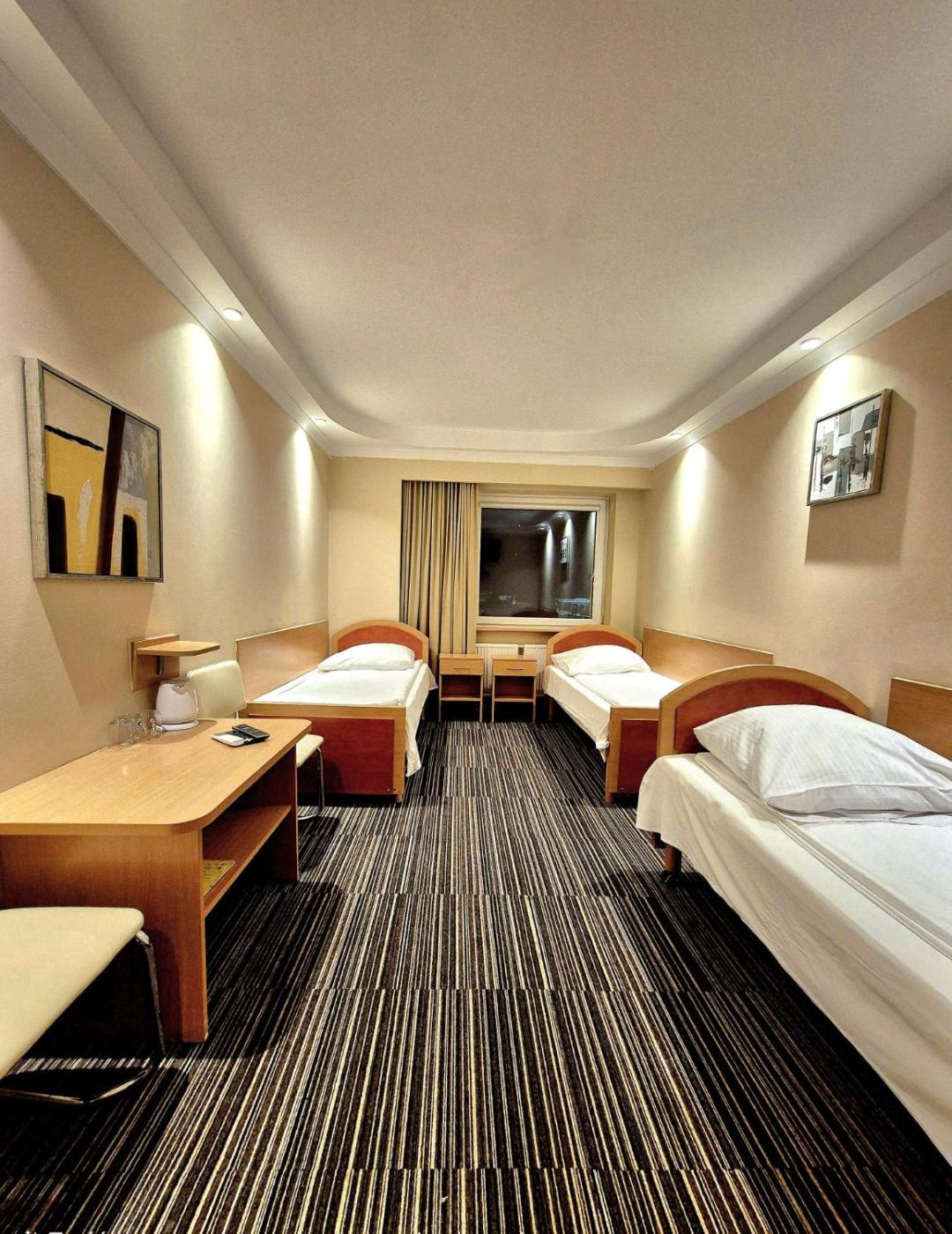 Pokój trzyosobowy. The triple room includes a private bathroom equipped with a shower and a hairdryer. The air-conditioned triple room provides a flat-screen TV with satellite channels, a tea and coffee maker, a wardrobe, a carpeted floor as well as city views. The unit offers 3 beds. Pokój Trzyosobowy - 3 osobowy. Powierzchnia pokoju ok.: 19 mkw. ;